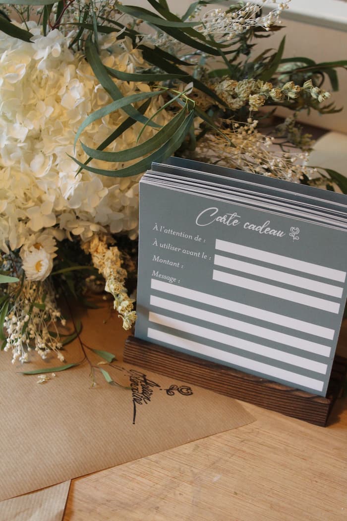 Choisissez le montant et je fais fleurir l’attention parfaite. La carte peut être remise en main propre ou envoyée par e-mail.